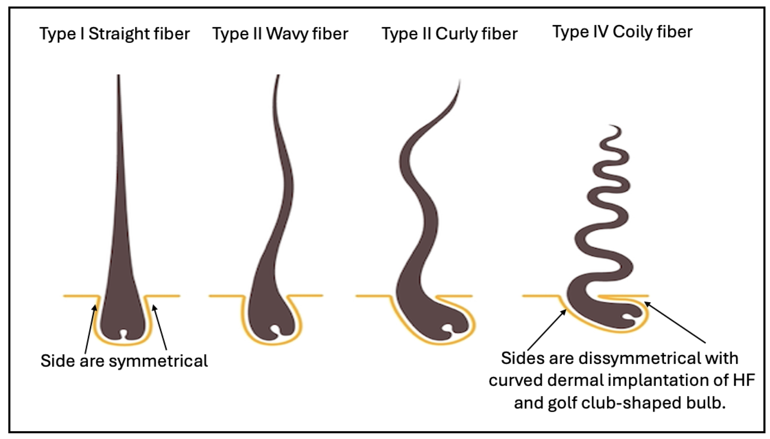 There are two types of hair on the body, vellus hair and terminal hair. Terminal hair having subgroups of different types of hair.